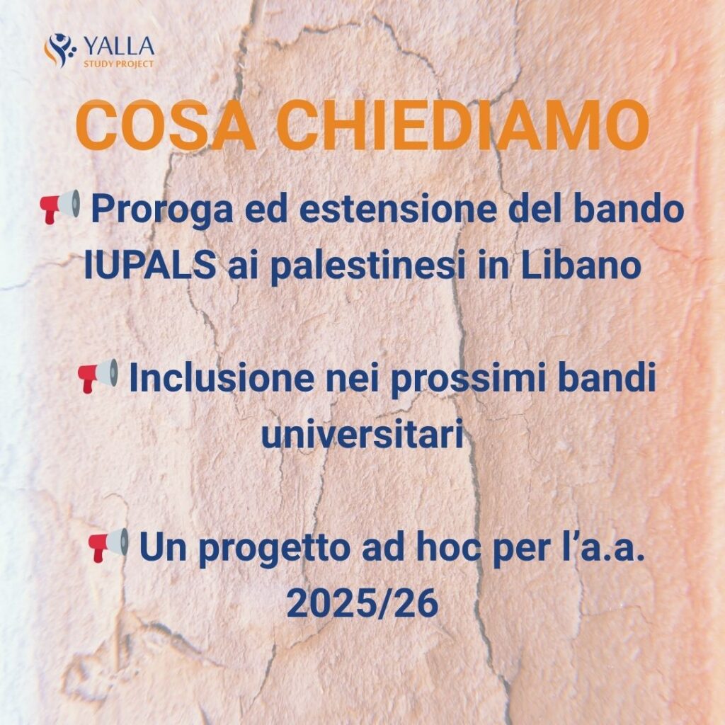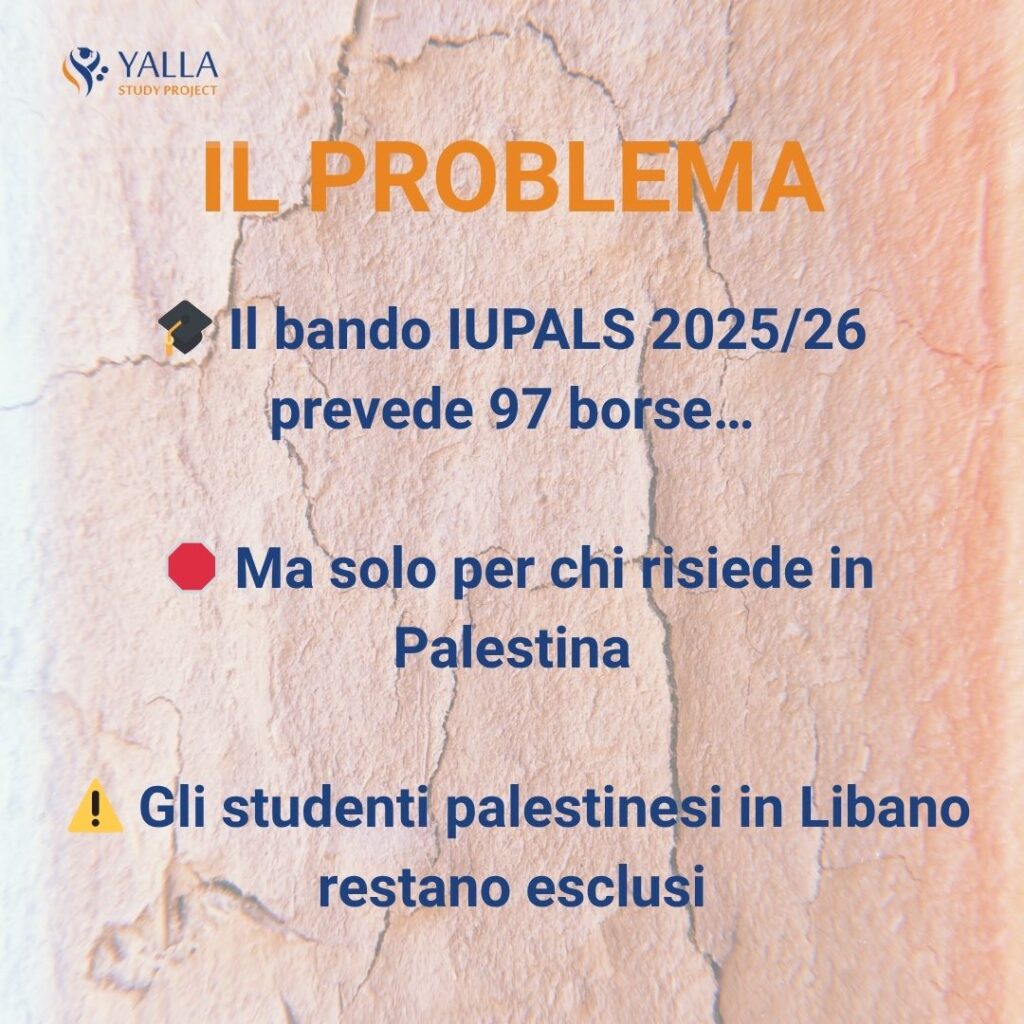 • Estendere il bando IUPALS 2025/26 anche ai palestinesi residenti in Libano